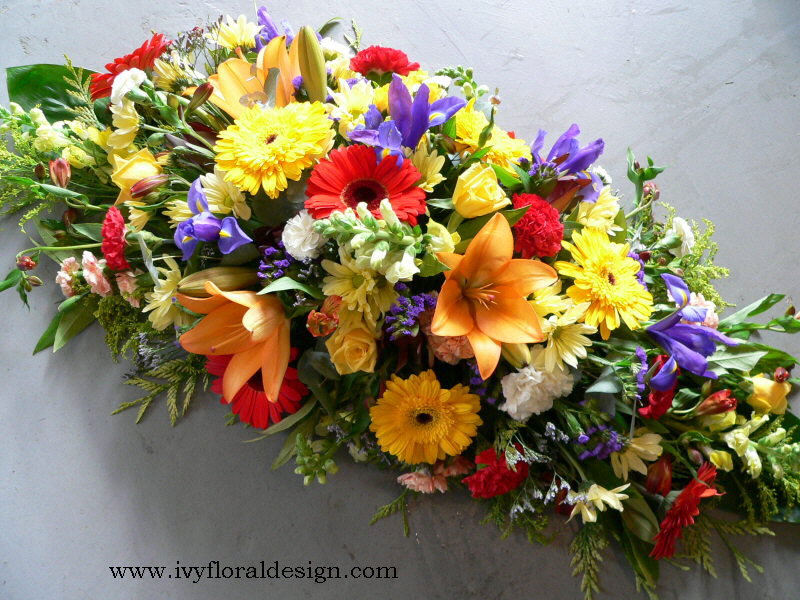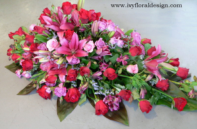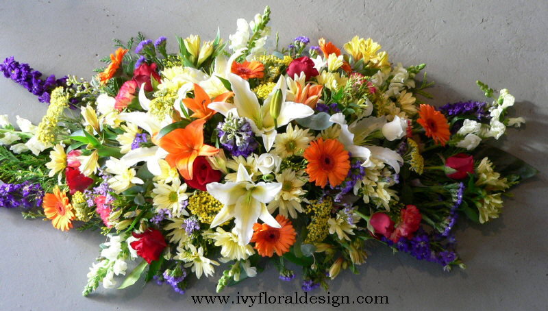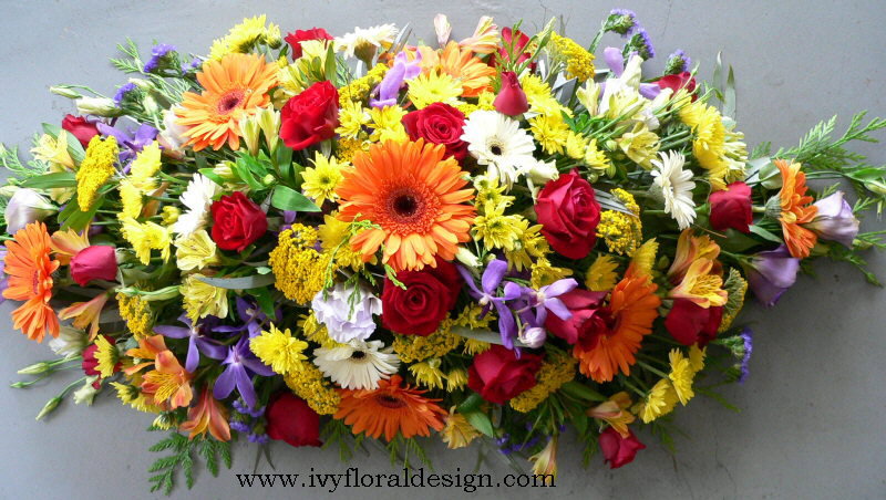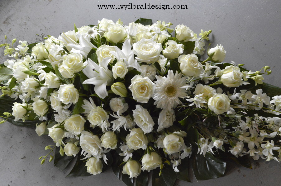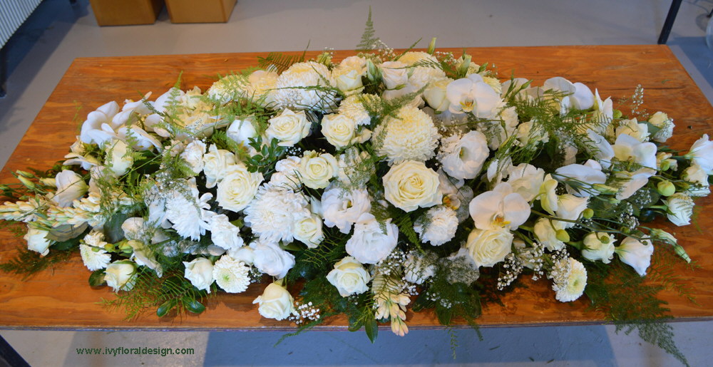 Ivy Florist offers personalised funeral flowers reflecting the character and celebrating the life. From casket top arrangements, open sprays, dignified wreaths and simple bunches through to single stems to suit every style of funeral and the message you wish to convey.