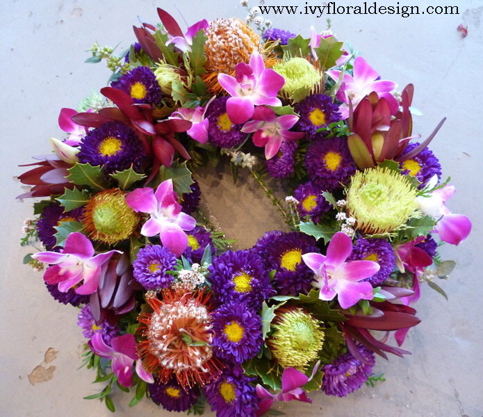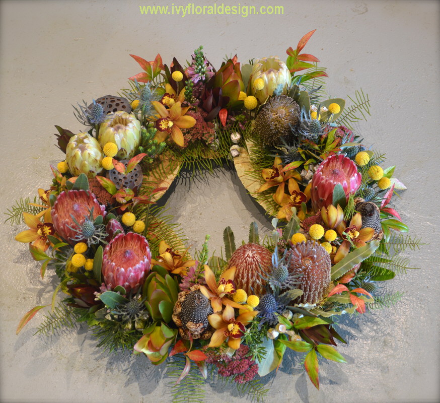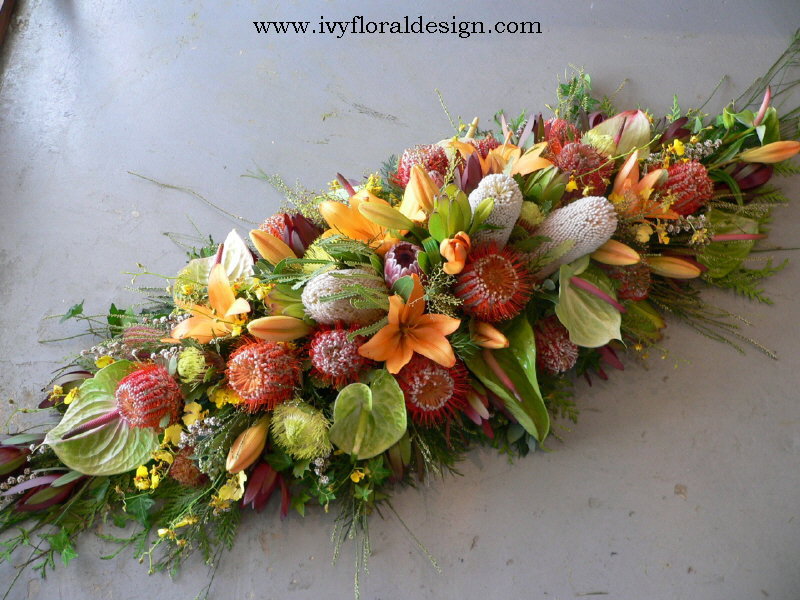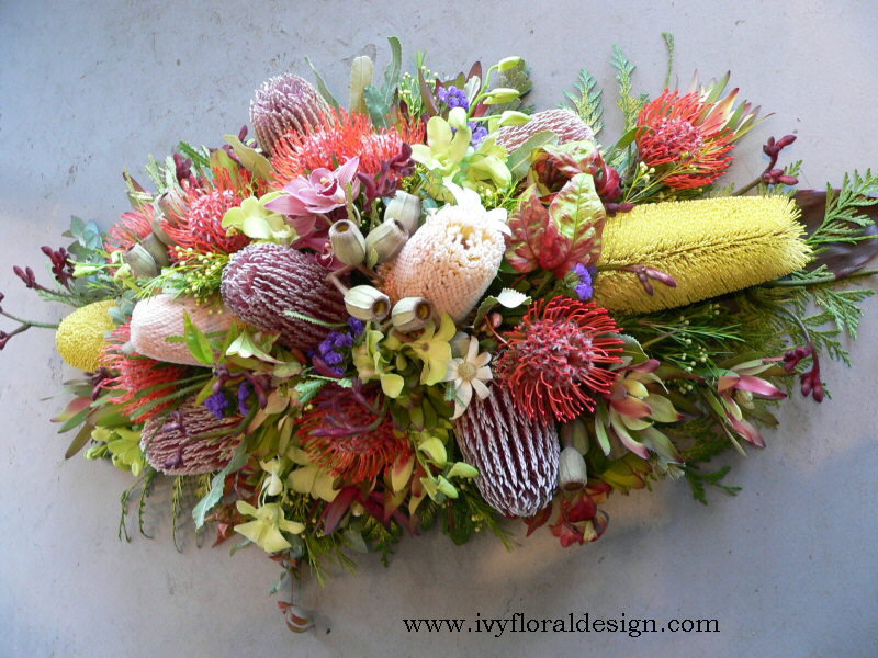Australian native flowers of banksia, lotus pods, orchids and kangaroo paw for the bushman or the avid team supporter's favorite colours, a stunning display of roses or a pastel feminine selection of soft fresh flowers, or even an original display of herbs for the dedicated cook, Ivy Florist can create the perfect tribute to portray your true meaning to mark this poignant occasion.